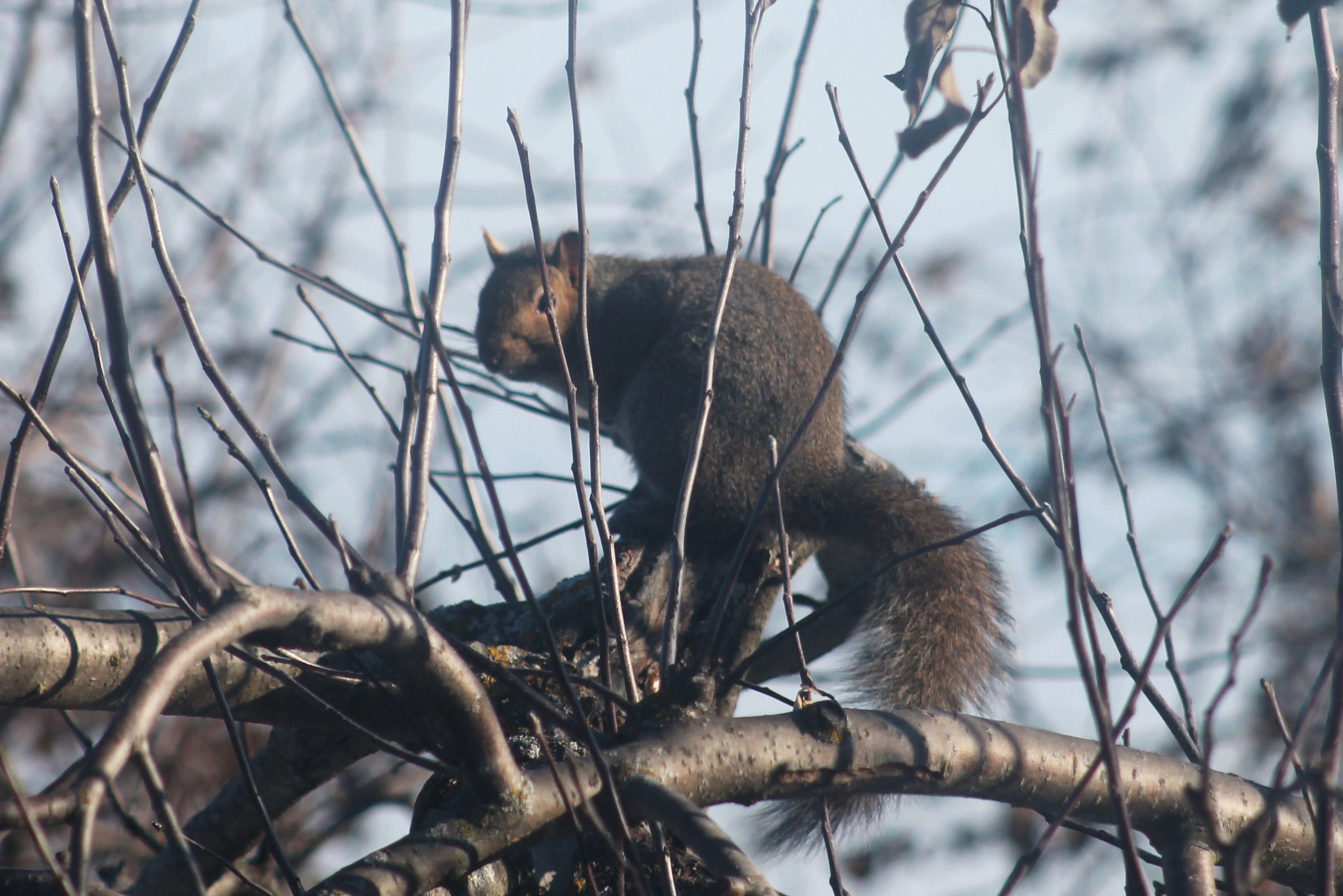 Earlier this winter, a gray squirrel expertly climbed into the apple tree in pursuit of a few remaining apples that were out of reach of the apple picker. Balancing on a branch in the beacon tree, it leaned out to reach an apple from the honey gold tree, it dangled from the branch upside down, grabbing the rotten apple. I wondered what held it in the tree; did it use its tail? I couldn’t tell. Do they have prehensile tails? It certainly appears so, but perhaps it is an optical illusion. Again, I saw a gray squirrel hanging upside down from the bird feeder. I observed its amazing feat with awe, though a bit irritated with it stealing birdseed and scaring away the birds.