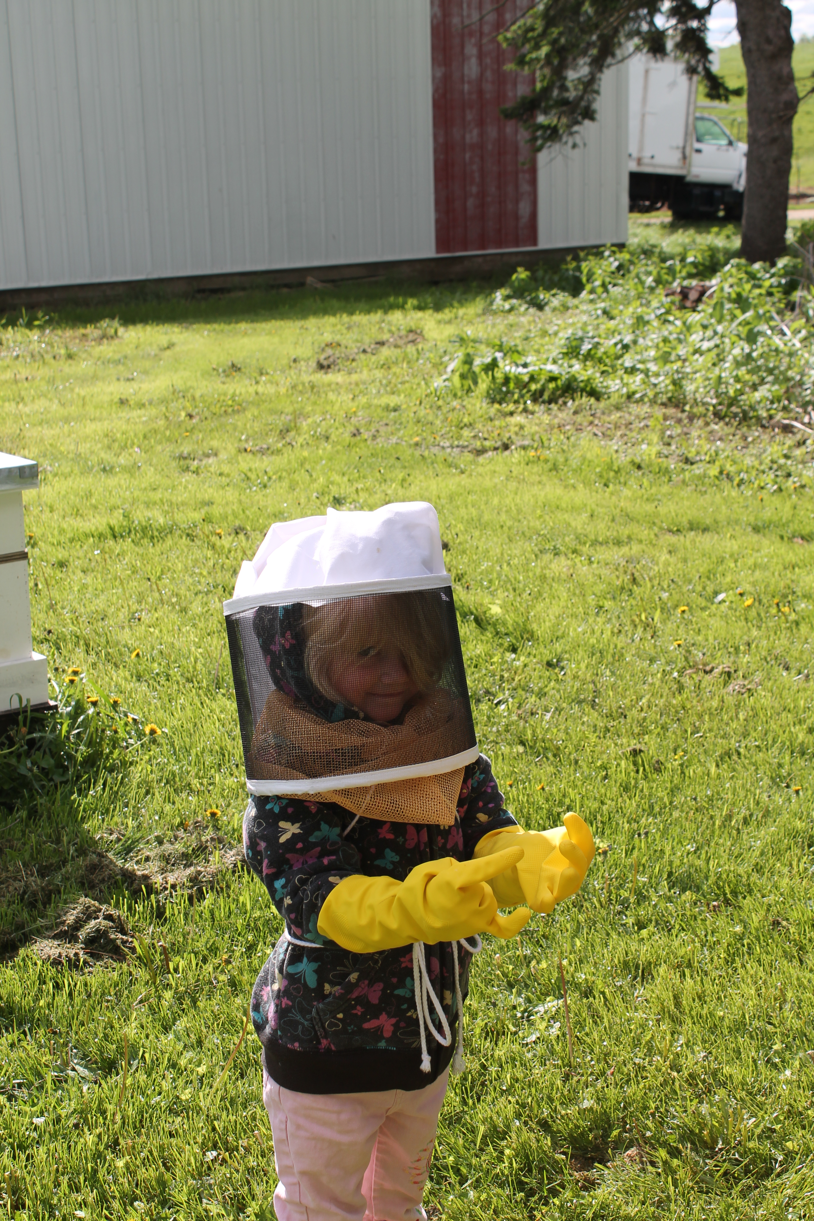 The beekeeper looked about the way I thought he would, somewhere between sixty and seventy years old, lean and well built. He was humble and honest when he spoke. He has been keeping bees for many years and still doesn’t know it all. Even with a bee suit, he guessed he is stung hundreds of times in a year, he is often careless while working with the bees. The beekeeper talked about EFB and told (demonstrated) how to treat the hives. He also talked about his bees he was selling (we were welcome to decline in buying them if we didn’t want to mess with EFB). He had a couple types of Italian bees, MN hygienic (which would come the following week) and Russians. Russian bees! And we could pick the race we wanted! After he was done talking, he took us to see the nucs then told us to pick ours, pay for them and load them up. (The talk seemed longer than what it actually was given the temperature of eighty degrees Fahrenheit, with long sleeves, gloves and a veil).