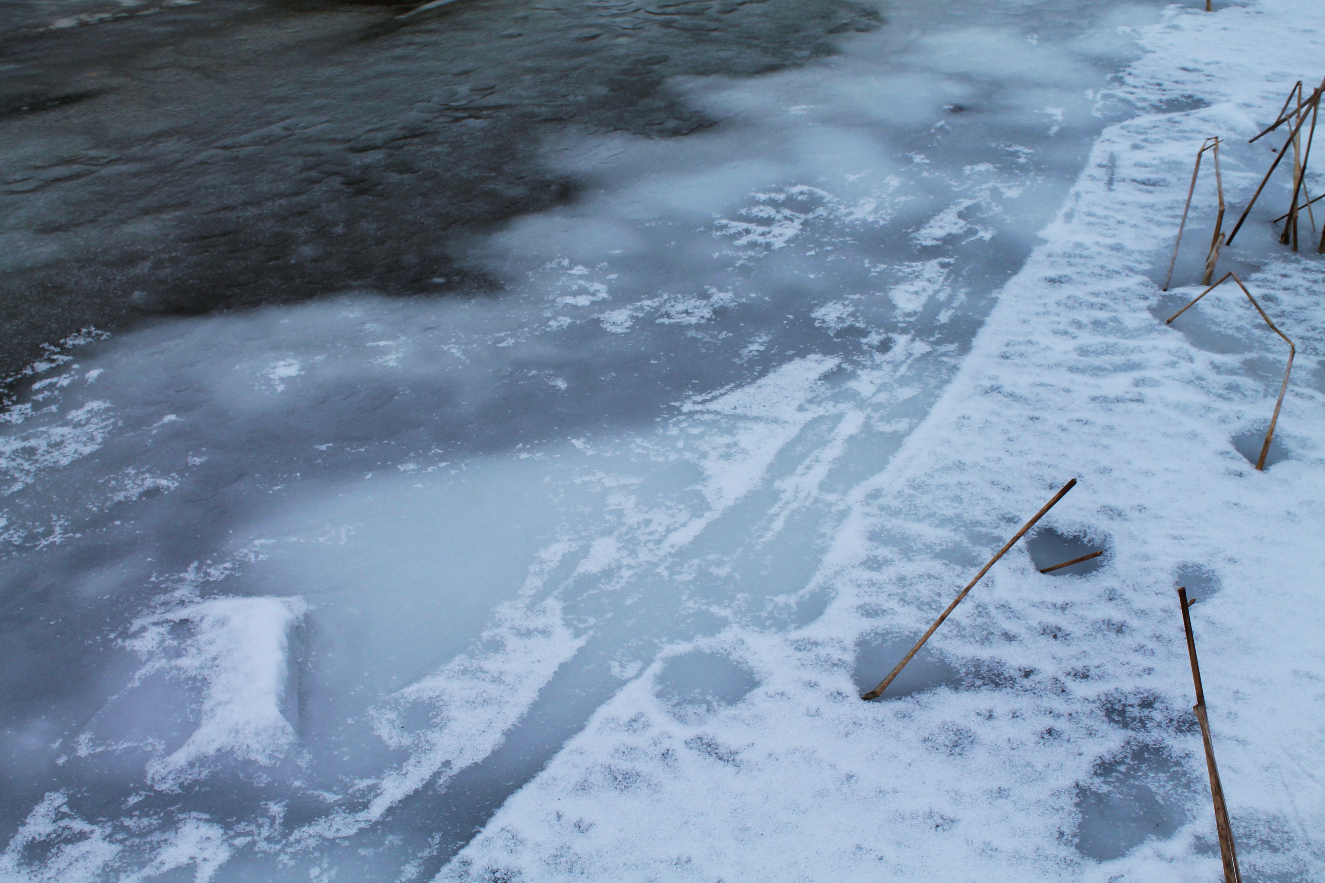 We came to a random spot with running water. “There’s a sound for you,” suggested Larry as we paused by the opening in the ice, water rushing, bubbling. Larry marveled at it, wondering why it was there. I stooped down by the hole. Listening and recording the gurgling water sound. Larry continued on, tapping the ice for a safe path. I stood up and followed him, almost running to keep up.