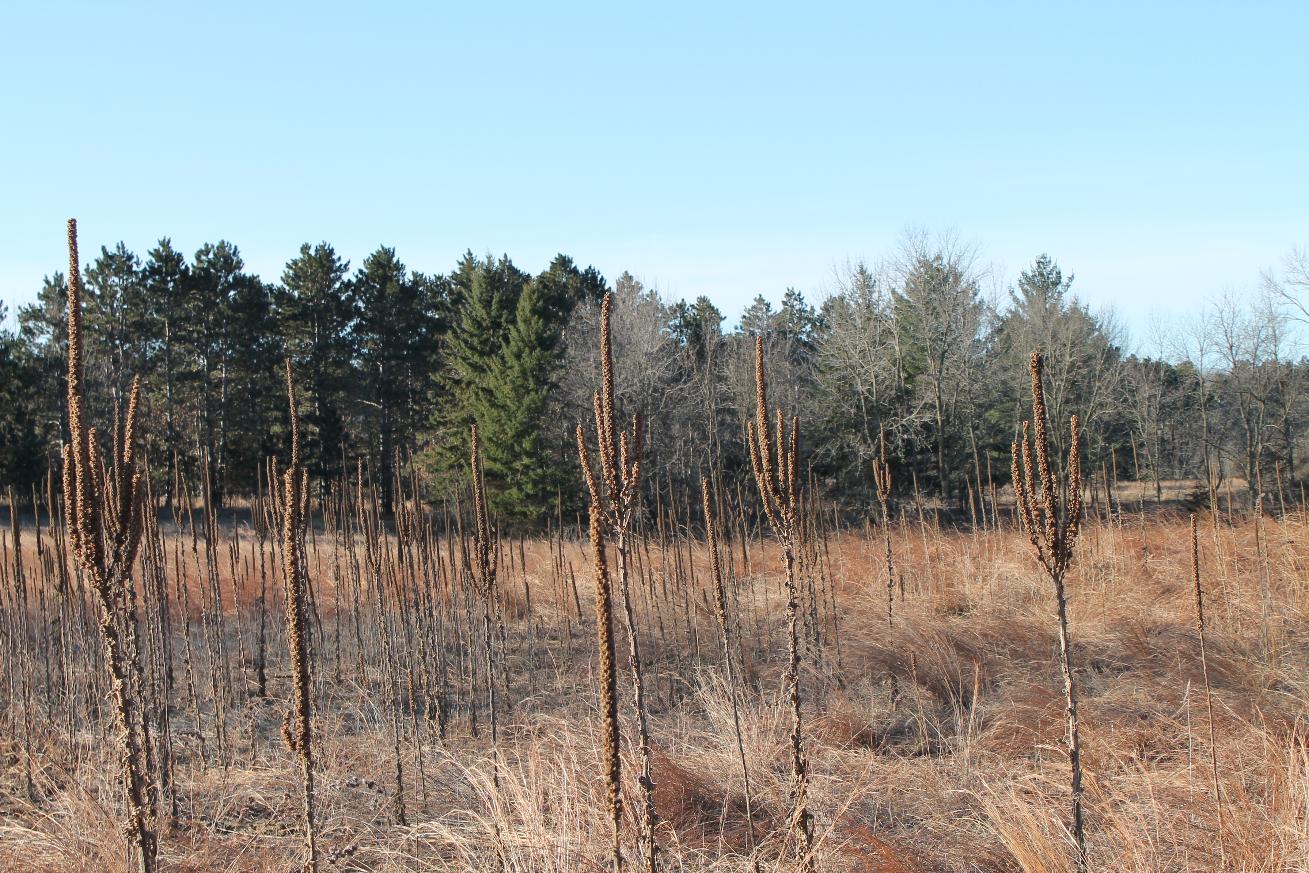 Larry and I sat at his table deciding what we should do this morning. With the warm weather, we were eager to go canoeing but the temperatures had fallen precipitously yesterday afternoon; it was nine degrees this morning so canoeing was out of the question. However, even though it was well below freezing, there was no longer safe ice to walk on. Larry said, “I’d like to show you some restored prairie and prairie that had little disturbance, mostly just grazing. There’s a lot of grass at the first. And I want to show you where we’ve been cutting cedars and getting ready to burn.”