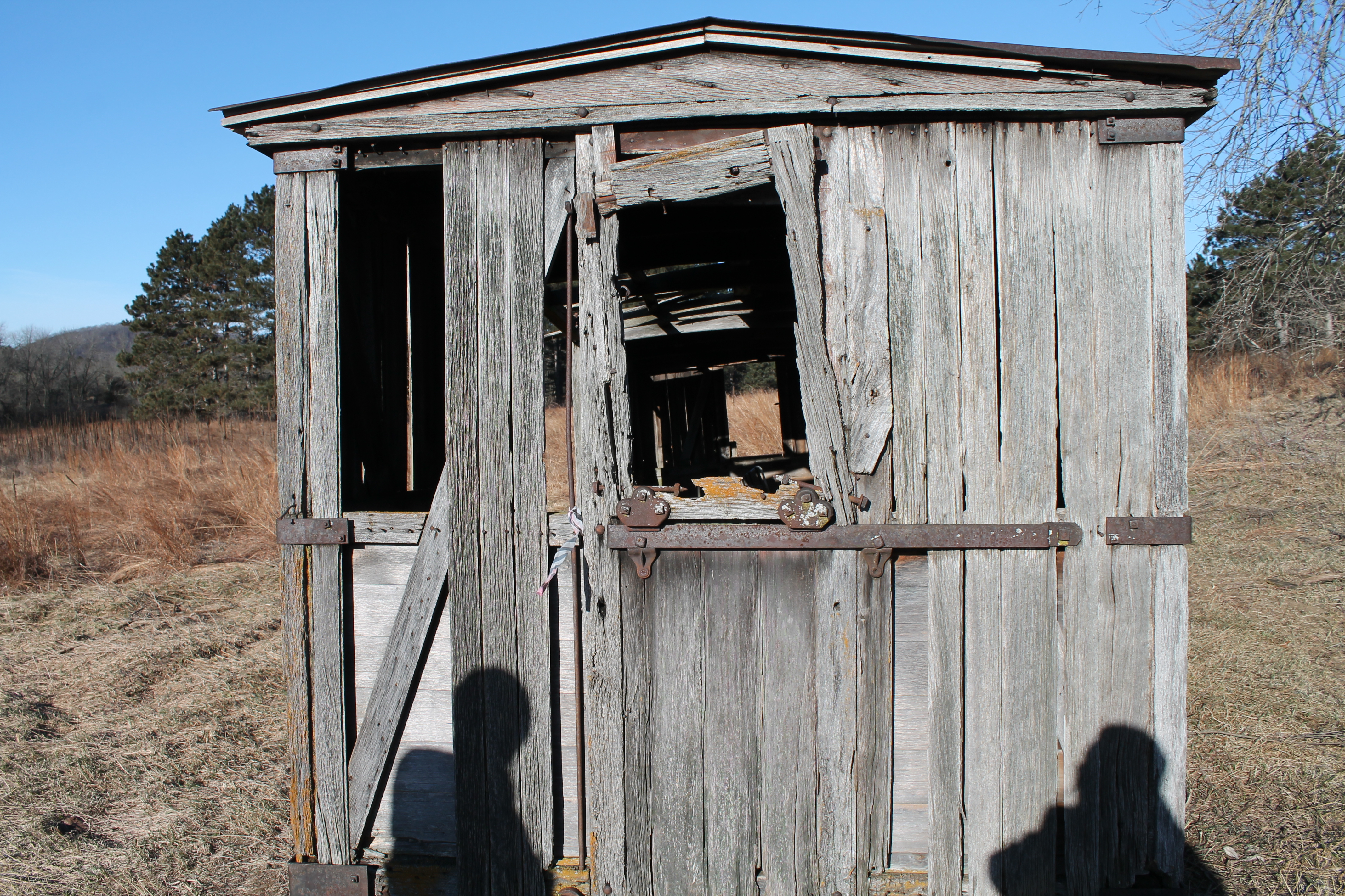 After taking a look through the window I walked to the side of it where Larry stood examining it. “I think it’s an old train box car. It’s really well built,” he said.