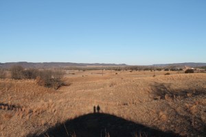 I looked at our shadows, ours and the dune’s, in the hollow – we looked so tiny compared to it all. There was a cluster of oak trees on the eastern slope of the dune. Larry led us downward through the trees. (We heard two flocks of swans flying overhead, heard them before we saw them.) Larry thought he heard a meadow lark. We were now heading eastward, making our way back to the truck. I paused to look at a skull, probably of a deer, lying in the grass. We passed a cedar tree, walked by a large patch of fox tail grass.