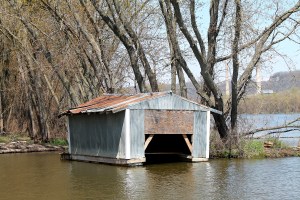 As we drove by a section of prairie, I explained to Jesse that during the summer, this area would be torn up and a bunch of sand would be dumped there, filling in and building it up. It will be a huge mess – Larry isn’t too happy with the way they are going to go about it. The restored prairie across the road looks really great; it looks the way the Nature Conservancy would like to see it. Also, it was a lot of work gathering the seed to plant the area. Larry preferred they’d dump the sand in a more localized area within the prairie and do it without tearing everything up first. I turned the jeep on to the West Newton road. The prairie was on our left. A couple of poultry barns sat by the intersection to our right, then a field/yard like area with a no trespassing sign and a line of trees. A little ways down the road, a gravel driveway to our left met the road, went parallel to it for a few yards then curved off northward to a nice paved parking area and public water access – this is West Newton Landing. They’ll close it this summer to pile the sand on the prairie. I turned the jeep onto the gravel driveway. I parked a little further away from the water access spot, in an area that wasn’t paved but graveled. The day was quite warm, almost eighty degrees and sunny so it was no surprise that there were many vehicles with boat trailers behind them, nearly filling up the parking area. We walked down the incredibly steep hill to the boat landing. There were three docks and one was under water and parts of the other two were as well. The water level was quite high. We walked on some large rocks along the water’s edge, on the left side of the furthest north dock. I pointed out an eagle flying far above the channel to Jesse. We sat down on the stones for a few minutes, watching boats come in and out. I had mixed feelings about the boats and their occupants. It was great to see so many people out enjoying the beautiful day – but was it anything more than an opportunity to get the boat out? Did they marvel in the budding tree leaves? Did their hearts soar with the bald eagles? Did they even notice the beauty and a world coming alive after the cold winter? Were they wonderstruck by it all, by the complexity of this ecosystem and all the many things that keep it in balance? Or was it all about the boat ride? And while boating is fun, I’ve enjoyed many boat rides, what harm and disturbance is it bringing to this place? Sometimes I find these divided feelings quite frustrating. – If only I could be all for motorized boats (they have some good qualities and uses) or totally against them (no way should they be used for recreation, only commercial fishing and scientific research). But I think a more realistic and holistic view is to be right in the middle. As a naturalist/ environmentalist/ nature lover, I find a canoe far superior to motorized boats – it causes far less disturbance and allows for more connection with the environment. Jesse and I moved carefully off the rocks and on to the dock for a better view down the West Newton Chute, a narrow side channel of the Mississippi River. My camera strap hung around my neck, but even so, I cradled my camera in both hands. The dock rocked gently back and forth in the water, which was rather soothing until Jesse started rocking the dock a bit more aggressively than the water, just to mess with me. Of course, he received some light scolding by me – I was trying to take some photos which was difficult with the extra movement of the dock. Straight out ahead of us to the northeast, is the main, navigable channel of the Mississippi. Not very far to the north of us, but blocked by a forested strip of land, the Zumbro dumps into the Mississippi. These two rivers played an important role in the shaping of the Kellogg – Weaver Dunes. To the left of the dock we sat on, is a small channel – perhaps it is part of the Zumbro or a separate stream running into the Mississippi (it isn’t marked, not even shown actually on Google maps. – Perhaps Larry would know.) Trees covered both sides of the channel, leaning out over it, creating a tunnel. The buds on the trees were just starting to open up – dots of color in the gray branches. I pointed out another bald eagle to Jesse. He said, “It’s probably the same one.” I hoped it was another one. There were several platforms, wood attached to floating barrels, bobbing on the water of the small side channel.