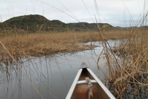 “Why aren’t there ducks?” I asked. He didn’t know the reason. Now that I realized they weren’t here, I felt their absence and was saddened by it. Larry continued to paddle the canoe through the tangle of wild rice plants. Finally, we came to more open water where we came upon the huge lily patch. The lily leaves were now shriveled and beginning to decay. We spotted Canada geese but that was it. We hardly even saw any red wing black birds; I maybe saw one or two.