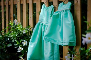 Since I have so many nieces and nephews (and Jesse has a few), I couldn’t pick a couple to be ring bearer and flower girl and leave the rest out. So instead I included all of them. Mom and I talked it over, way back in November, she would make matching dresses for the girls and vests for the boys – again taking on more work for the wedding but I wanted to do this special thing for the kids. Of course because kids grow so fast it couldn’t be done very far in advance – Mom began work on them in June. Aleesha came over and helped cut out patterns and the pieces of the dresses. For the majority of the sewing Mom was able to use her sewing machine, but there were many hours of hand stitching to do on each dress. She made thirteen dresses. Mom also decided to do the alterations on my dress which was a lot of work, since I am not that tall. The bodice, with all of its layers and beading took a lot of thinking and time to fix. Shortening the skirt, with its two layers of satin and 4 layers of tulle was also a challenge. I helped her with hemming the skirts. She worked on it for over a month before it was finally finished. My sister’s dresses needed alterations too but they were relatively easy to do. They were done the Monday before the big day; a lot was accomplished in those six days.