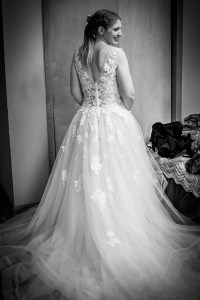 My dress was actually the first wedding detail, aside from setting the date, to be figured out. Aleesha, Johanna, Mom, and I had a day to look at dresses back in November. Leo and Ember tagged along. Mom and I were thinking we’d just decide what style we liked best and then maybe find one online to buy. The wedding consultants were fantastic. There was only one dress that they picked out for me that was an absolute no before I even stepped out of the dressing room. Several were ruled out. It was a blast. The woman pulled it out of the bag, “I know this really isn’t what you are looking for, but I think you should try it on anyway.”