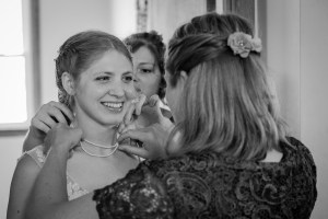 “Ok. Then I won’t put mascara on your bottom lashes.” It feels very strange to have someone leaning over you, their face very close to your face and then using implements around your eyes. Every time I’ve had it done by a stylist I have felt very uncomfortable. But it felt perfectly natural and not at all awkward having Johanna doing it. With Johanna, I didn’t feel like I needed to apologize for my blinking. Again, I just enjoyed the intimacy of having a bridesmaid, a sister, doing my makeup rather than a stranger who doesn’t know me, hasn’t a clue the journey I’ve traveled to get to this point. It’s almost a relief and humbling to have someone who thought of you as a pesky, bratty, annoying little sister trying to make you look stunning, although she thinks you already do, on your special day. So sweet. Perfect. That is beauty. Some people do just a lot of pretending and mask wearing at weddings to keep things polite and civil. But that wasn’t happening here; despite our annoying and frustrating each other during childhood and more recently, being totally different people, seeing things in a totally different way, she was truly and genuinely happy for me, and honored to be a huge part of it. She was nervous about messing it up or poking me in the eye; as she began she said, “I’ll try not to poke you in the eye.”