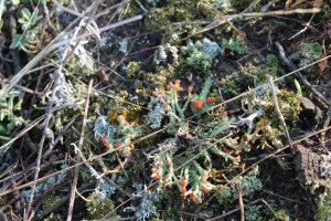 I saw a mint plant. There was a patch of open sand. We’d continued walking after taking a close look at the British soldiers. Lyre-leaved rock cress caught my eye along with several buttercup plants. I paused to photograph them, and then followed after Larry.
