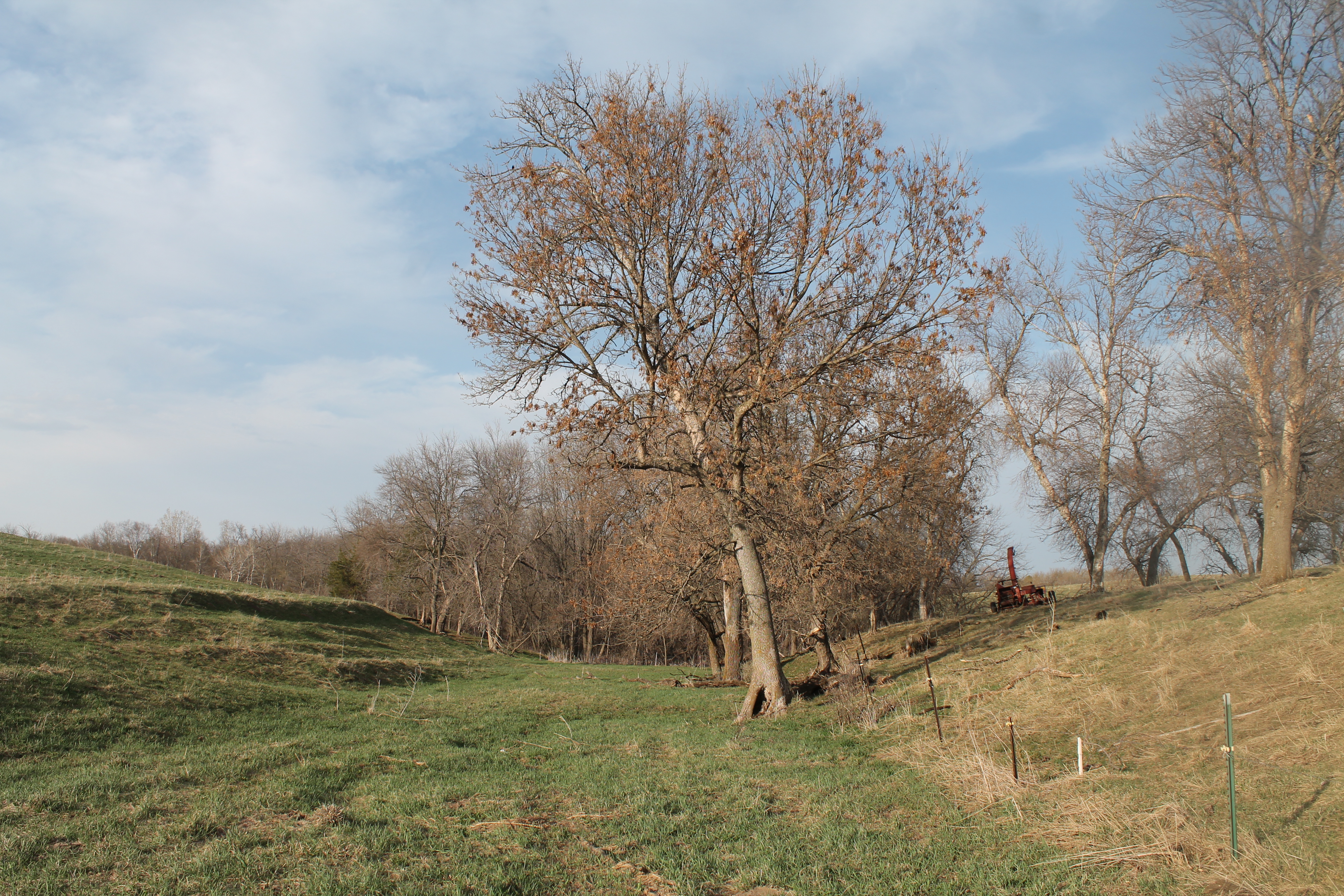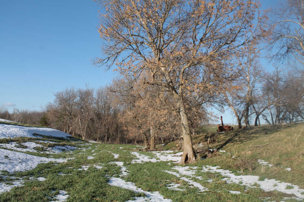 Walking across the yard, down the road, up the hill and down into the pasture lane, there was no trace of snow. Hints of green could be seen here and there in the grass, though it was not truly greening up just yet. My walk on April 10th was entirely different than that of the first. It had been quite warm this week, the pasture was starting to develop a blush of green, not yet vibrant. The sun shined brightly, the sky clear. The woods glowed in the morning light. I enjoyed the warmth and change in season. Fallen branches lay all over. By the cluster of walnut trees, I pushed the barbed wire fence down and stepped over. I weaved gingerly through the brambles, trying to keep them snagging my pants. It’s amazing how much woodland debris I had been treading on all winter long, branches and logs of all sizes. I had to be more mindful of my steps. I picked my way down the first little gully, and back up the other side, and skirted around a fallen branch. A few paces further, I stepped over a log. Here in the woods, patches of snow persisted in the shaded areas. I bent down to examine moss, excited to find it awake from its winter slumber. It almost looked tropical. (I wish I knew the name of the moss, perhaps it’s not moss at all – some people think the more you know about science the less wondrous it is, but I think it is quite the opposite. Once I know the name of a thing and can learn about it the more wondrous I find it and the easier to connect to it as an amazing being.) I took note of boulders and moss covered logs in the ravine I didn’t know were there. I sauntered under the cathedral arch of bent trees, stepping through a couple piles of rotting snow. Decaying logs dotted the slope above me. The woods were various shades of brown and gray with a little bit of green beginning to show through. Water sat in the ravine, a springtime stream.