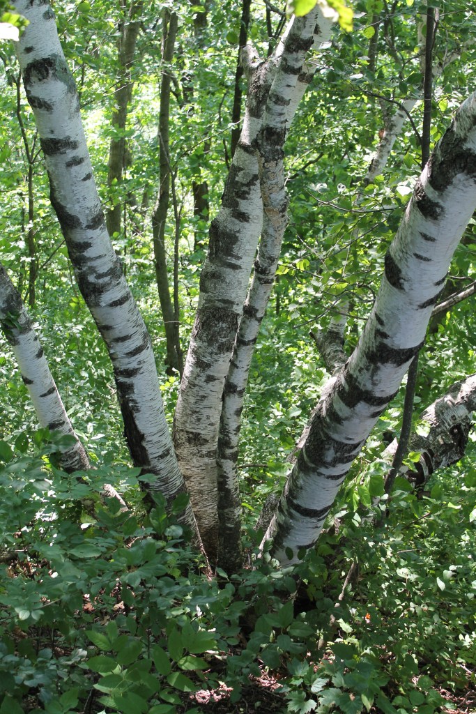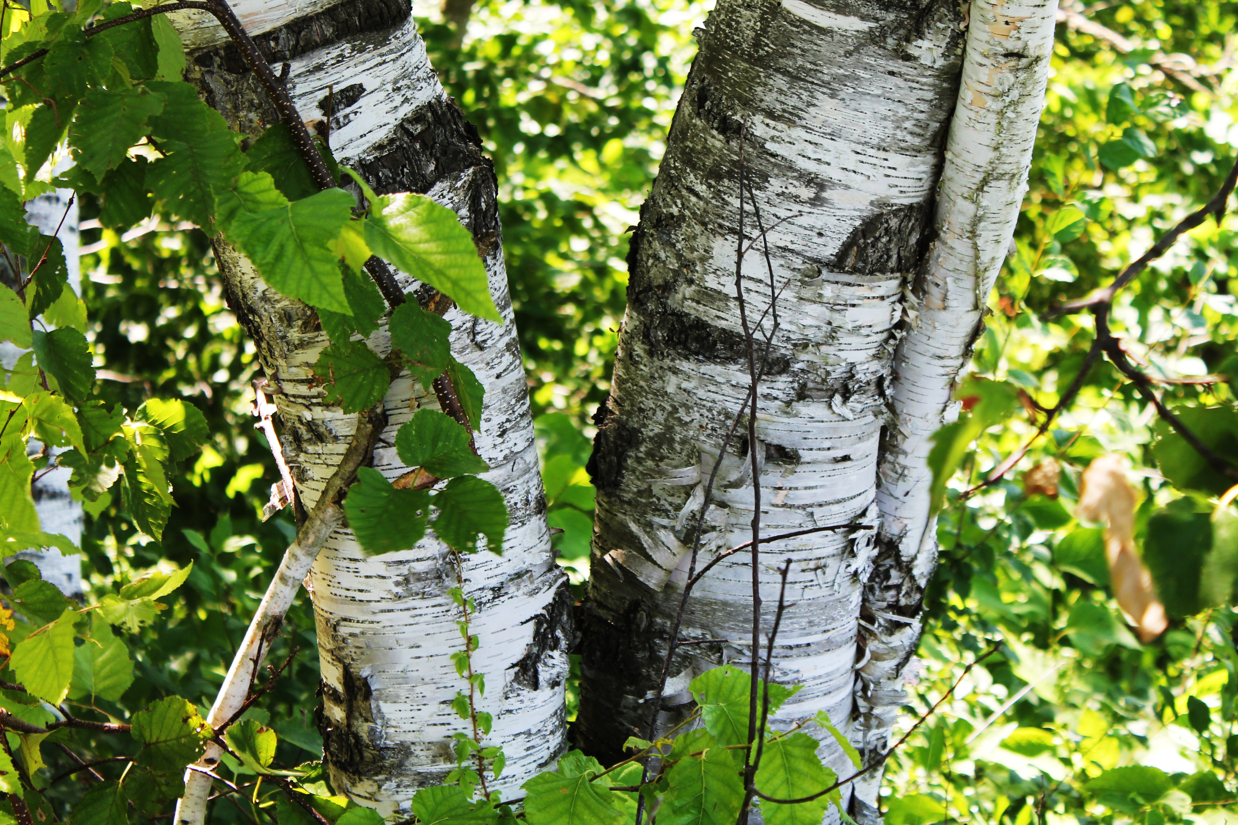 Also referred to as American white birch and canoe birch, it is a native to northern North America. It grows with either a single or multiple trunk, commonly a single trunk in forests, though I’ve seen some growing in the wild that had multiple – but that is more typical as a landscape tree. The multiple trunks, of a particular tree I have known, are serpentine tentacles of an upside down squid, but far lovelier. These trees are usually short lived. They prefer colder climate regions, and grow in many soil types. I have seen it on steep, rocky bluffs sides to flat acidic soils of the boreal forest. Its bark flakes in horizontal strips. Black marks and scars interrupt the smooth white bark. Having a high oil content, the bark is waterproof and highly weather-resistant. Hollow bark will remain intact after the wood of a downed paper birch has rotted away. It flowers from April – June. Fruit matures in fall, tiny winged seeds packed between catkin bracts. It grows in stands by itself, and/or with black or white spruce, red spruce and balsam fir, big toothed aspen, yellow birch, and maples.