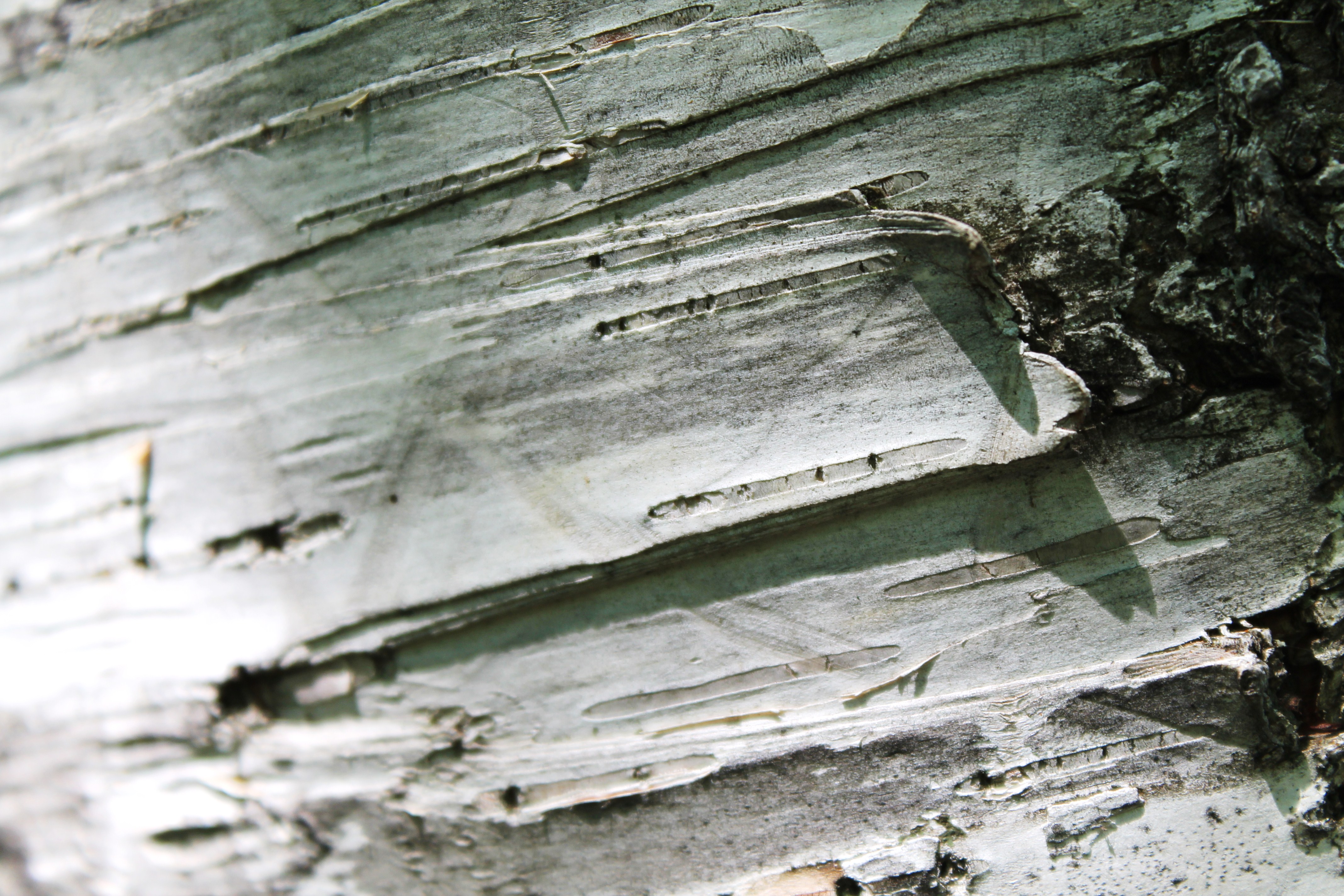 A lone paper birch tree, betula papyrifera, stood in the shady side yard of my childhood farm, a white beacon in a dim yard, unassuming and yet eye-catching. I knew from a very early age that this was a special tree; Mom had all but said so when she forbade us to climb this fragile dwarf among the pines. Given the nature, or rather the structure of a paper birch, it wasn’t a prime specimen for climbing anyway, not that we didn’t try it. I would attempt to climb any tree that had the remotest possibility of being climbed. I even tried shimming up slender, branchless trunks. So whether it was forbidden or because it illuminated the yard, it drew me like a moth to a flame. It had two trunks separating a couple of feet above the ground. The most I could do is pull myself up into the notch between the trunks and sit, which I am sure I did a time or two. Although the average paper birch can reach sixty feet tall, this one was nowhere near that – it must have been a young tree. And yet, it quietly provoked reverence. Some cast off branches lay scattered at its feet. I liked the feel of its smooth, papery bark and the look of its eye-catching black notches. Many family photos were taken by this tree. While hiking through any woods, I pause and admire every paper birch I pass – and usually photograph it. The peeling white bark is irresistible, I almost always reach out to touch it. I love the curl of the decorticating bark. The salmon color of the inner bark. The silvery, shimmering of the dancing leaves. The long, green brown caterpillars, often grouped in clusters are the wind pollinated flowers called catkins. Leaves shaped like spades. Pearly white skin, a remnant of Eden, too lovely and pure to be a part of this world. Elegant, radiant, royal, majesty, delicate.