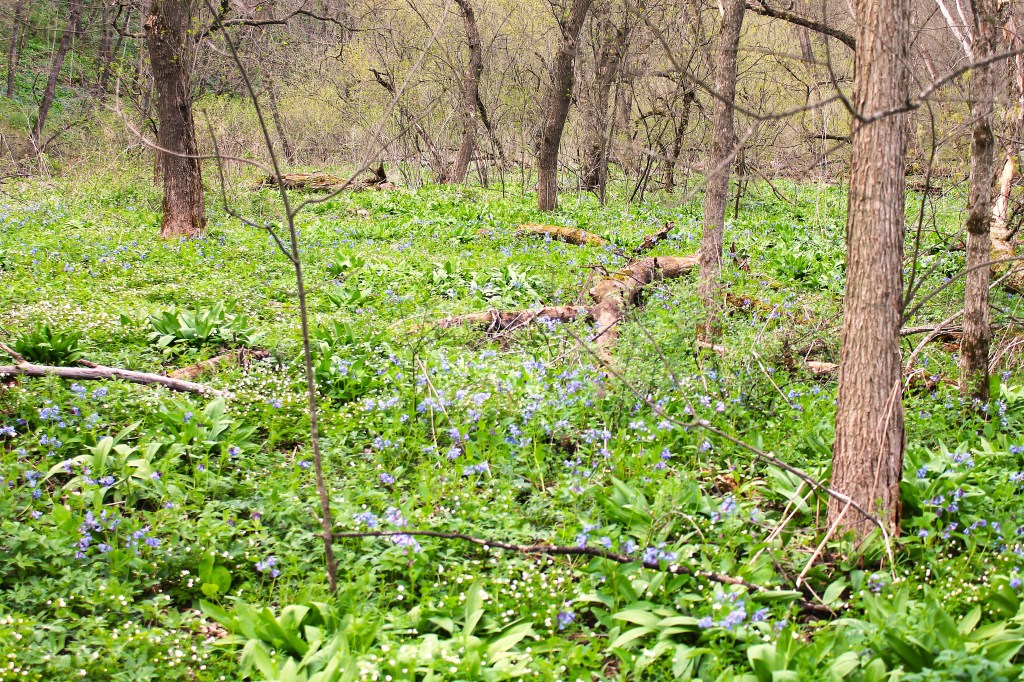 “I don’t know,” Mom replied. She bent down and pulled out a clump of garlic mustard, an invasive that the park staff is all too happy to have visitors remove. Shelby silently enjoyed the beauty of the park, seeing it and the wonder of blooming bluebells for the first time. Isaiah doesn’t hike much but also seemed to be enjoying the wonder and healing powers of being in the woods. Stretched out beneath the trees, lay an impressionist painting, the bluebells appeared to glow.